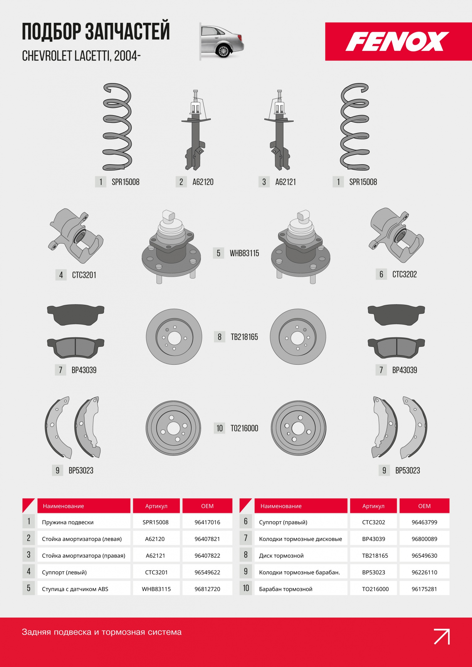 Даже надежный Lacetti требует качественных деталей для стабильной работы и безопасности. С запчастями FENOX вы получаете проверенное качество и совместимость с ключевыми узлами автомобиля.
