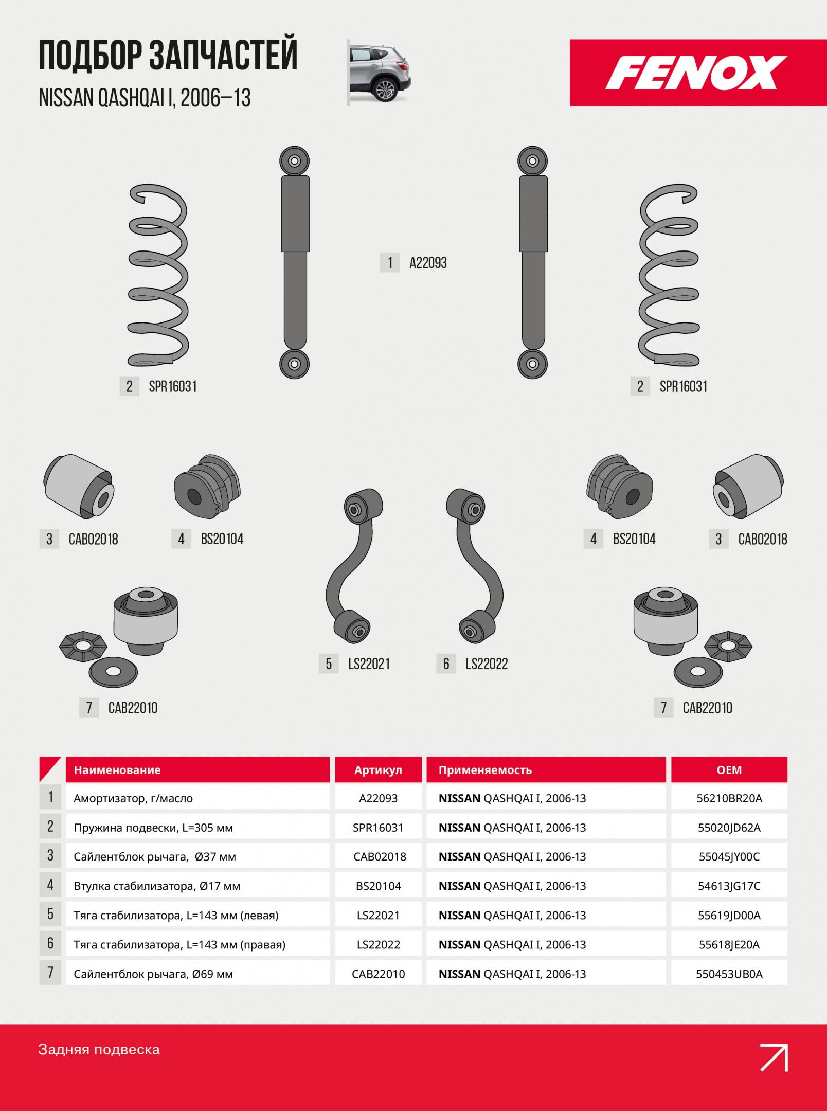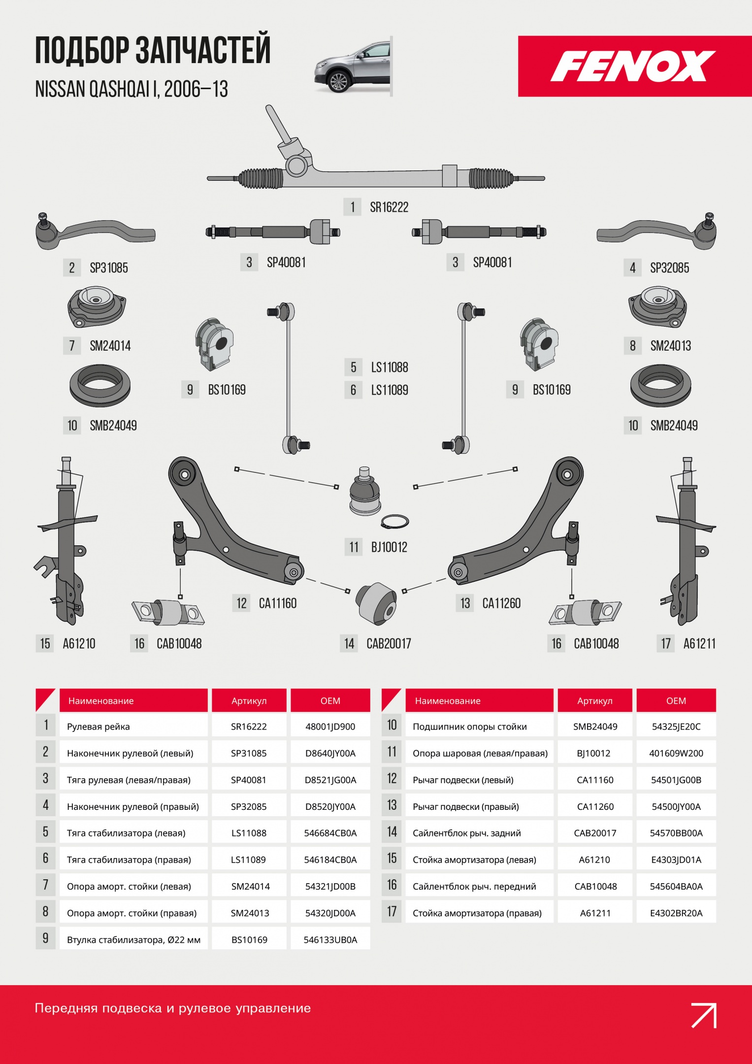 Даже надежный кроссовер требует качественных комплектующих. С запчастями FENOX вы получаете проверенное качество и соответствие техническим требованиям Nissan Qashqai.