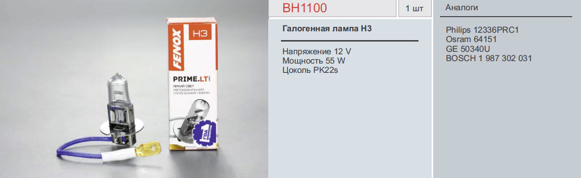 | Наименование | Параметры | №Fenox | Цоколь |
