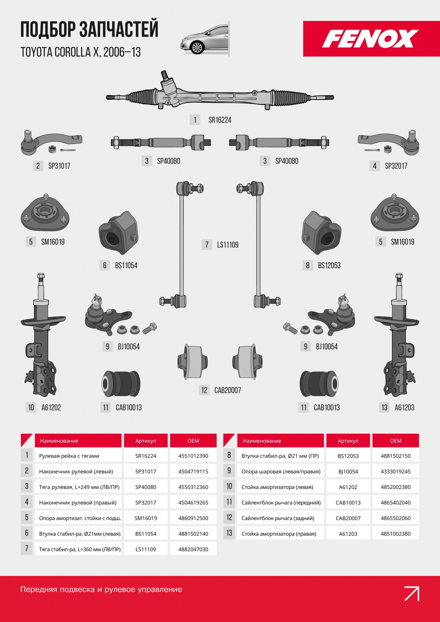 В этой статье продолжаем подборку запчастей для популярных автомобилей и рассматриваем ключевые узлы Toyota Corolla X 2006–2013.